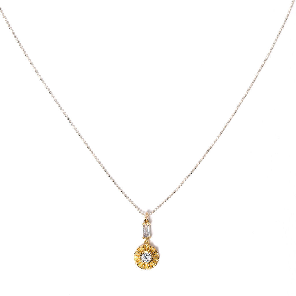 Mixed metal, stylish simplicity with a centered cubic zirconia stone that adds just the right amount of sparkle.