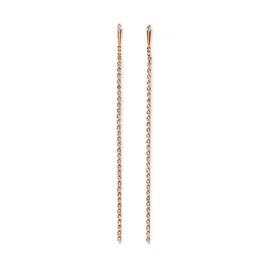 The Swagger earrings combine sleek design with edgy attitude. The dripping rhinestones add bold shimmer and fearless style. Can be dressed up or down.